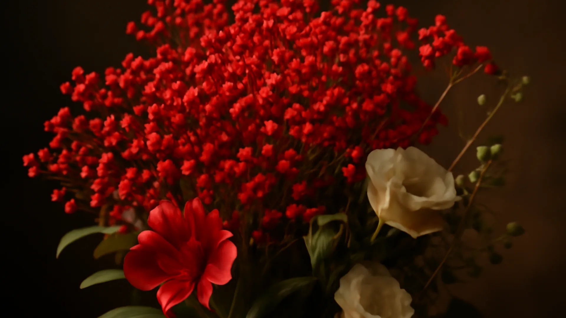 Brudeslør i rød variant. Fin i bukett, som gave eller når du vil imponere uten å anstrenge deg.